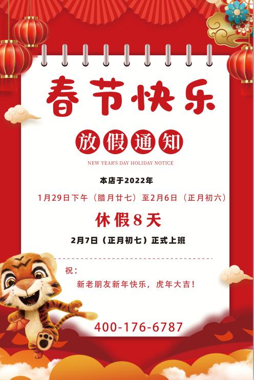 計劃于2022年1月29日下午至2月6日(正月初六)放假